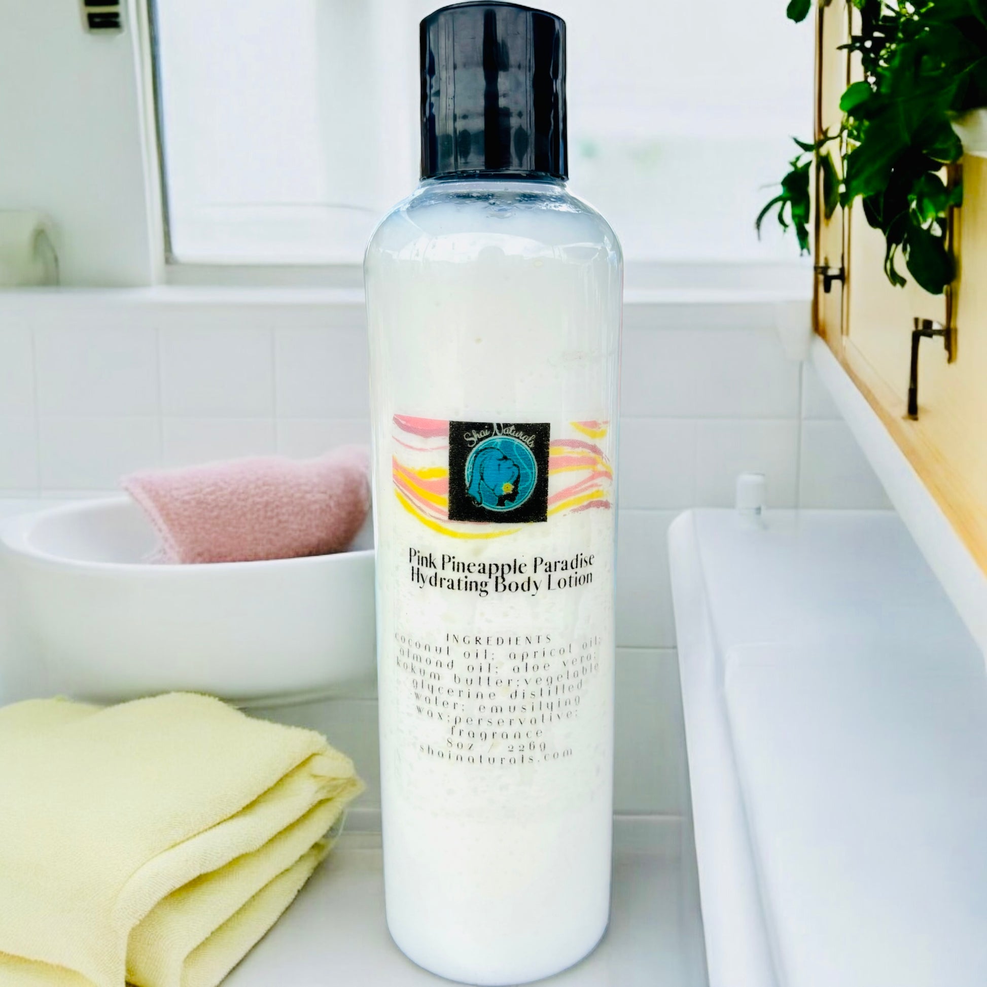 Experience the luxurious hydration of our Pink Pineapple Paradise Moisturizing Body Creme! Enriched with Kokum butter, almond, and apricot oil, this creme not only gives skin a natural glow, but also provides elasticity and deep moisture. Treat yourself to a paradise-inspired indulgence for beautifully radiant skin!